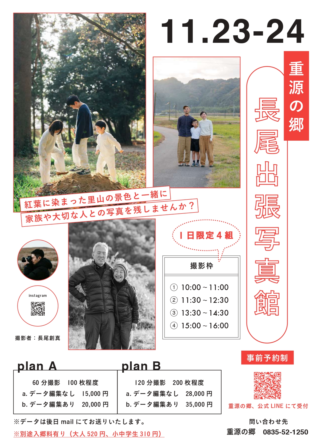 秋の紅葉に染まる重源の郷でプロのカメラマンに家族の何気ない写真を撮ってもらえます!